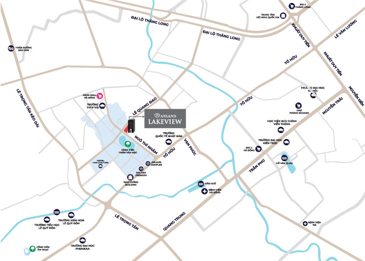 Tọa lạc tại trung tâm Khu đô thị Dương Nội 1, dự án Anland Lakeview có vị trí đắc địa khi soi bóng bên hồ Bách Hợp Thủy thuộc Công viên Thiên văn học - trái tim của tổng thể khu đô thị.
