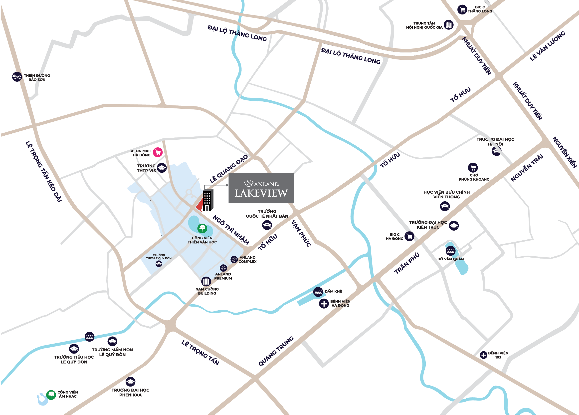 Tọa lạc tại trung tâm Khu đô thị Dương Nội 1, dự án Anland Lakeview có vị trí đắc địa khi soi bóng bên hồ Bách Hợp Thủy thuộc Công viên Thiên văn học - trái tim của tổng thể khu đô thị.