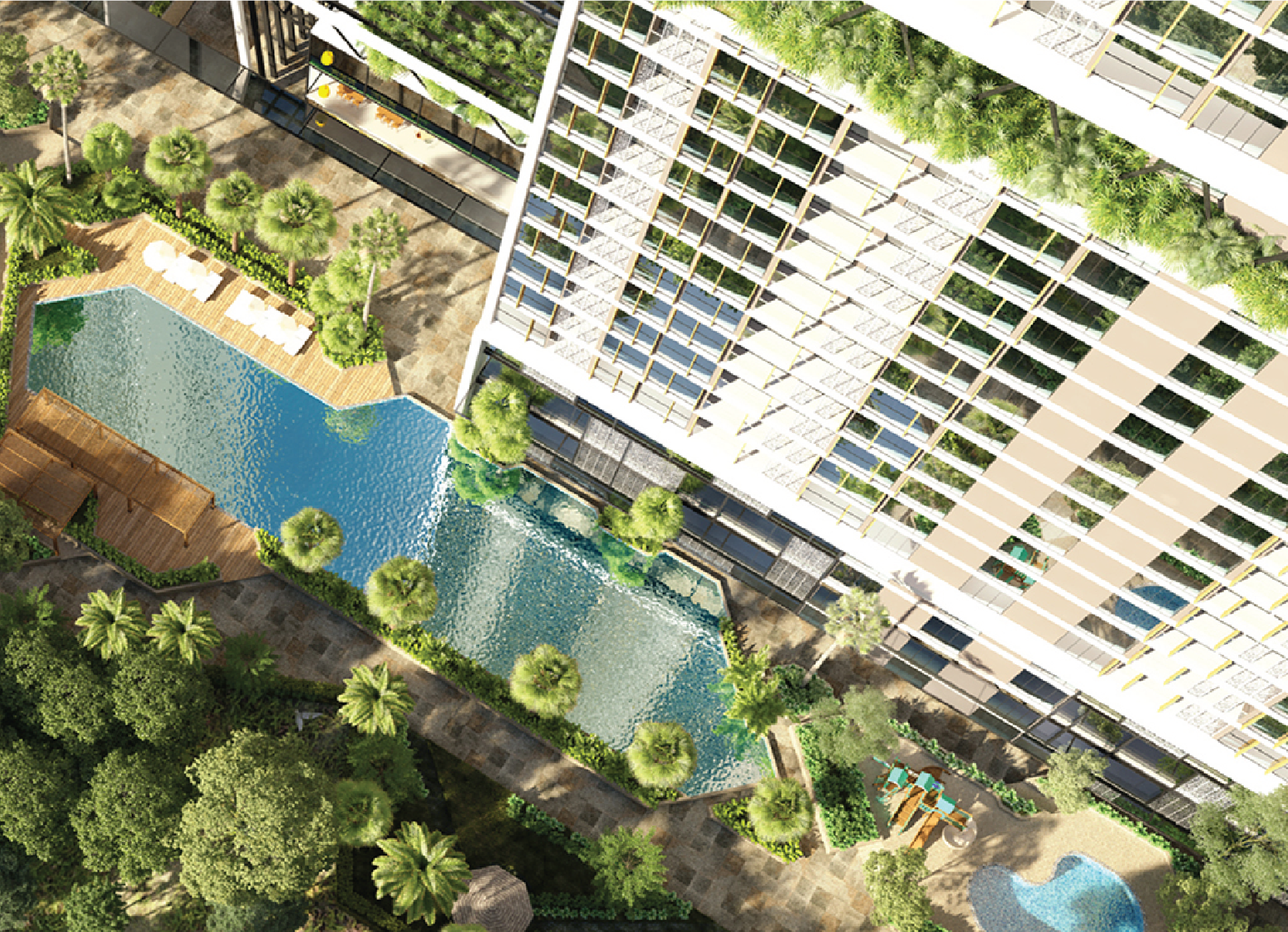 Các tòa đều có vườn treo trên cao làm tăng không gian xanh tạo nên cảnh quan chung cho tòa nhà.